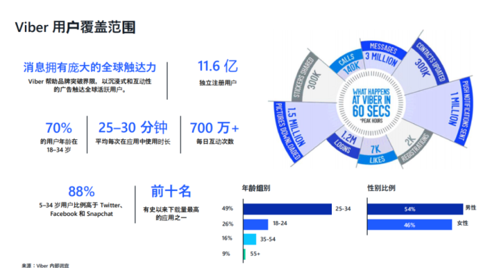 Viber作为另一个OTT渠道,虽然用户规模不如Whatsapp庞大,但在东欧和菲律宾等地区的用户中非常受欢迎。它的界面设计更加年轻化,适合特定市场的用户群体。如果您的业务目标是进入这些地区,Viber无疑是一个非常重要的渠道。
