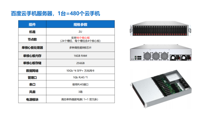 首先是云手机服务器,它是一台超级多面手,一台服务器可以承载480个云手机,配备2U机箱,支持96个核心板。每个核心版搭载高性能8核芯片、16GB内存和256GB存储,同时配备4个10G的万兆网卡。无论是批量操作还是数据传输,它都能轻松应对。